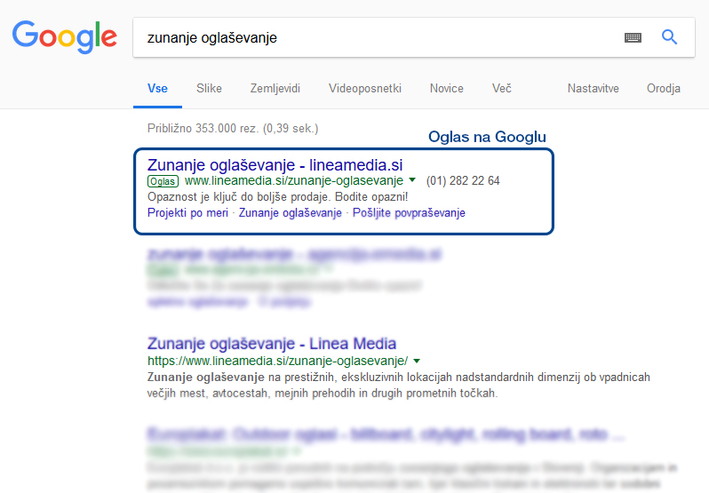 Primer oglasa na Googlu: